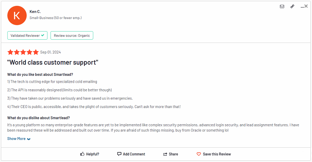 Smartlead’s G2 Rating: 4.7/5 ⭐ (200+)