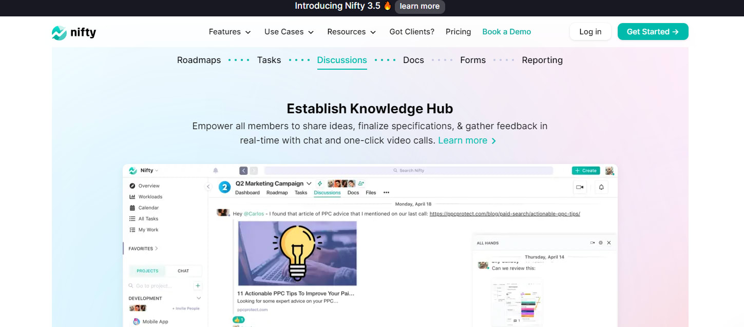 Nifty is project management software that enables seamless collaboration on marketing projects with your team members. With a toolkit of easy-to-build if/then automations, you can streamline your creative process from conception to publishing.