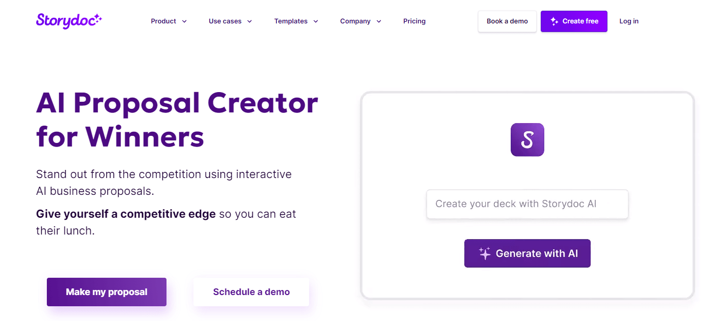 • AI Assistant: Storydoc’s AI assistant can generate copy and media that needs minimal final editing.