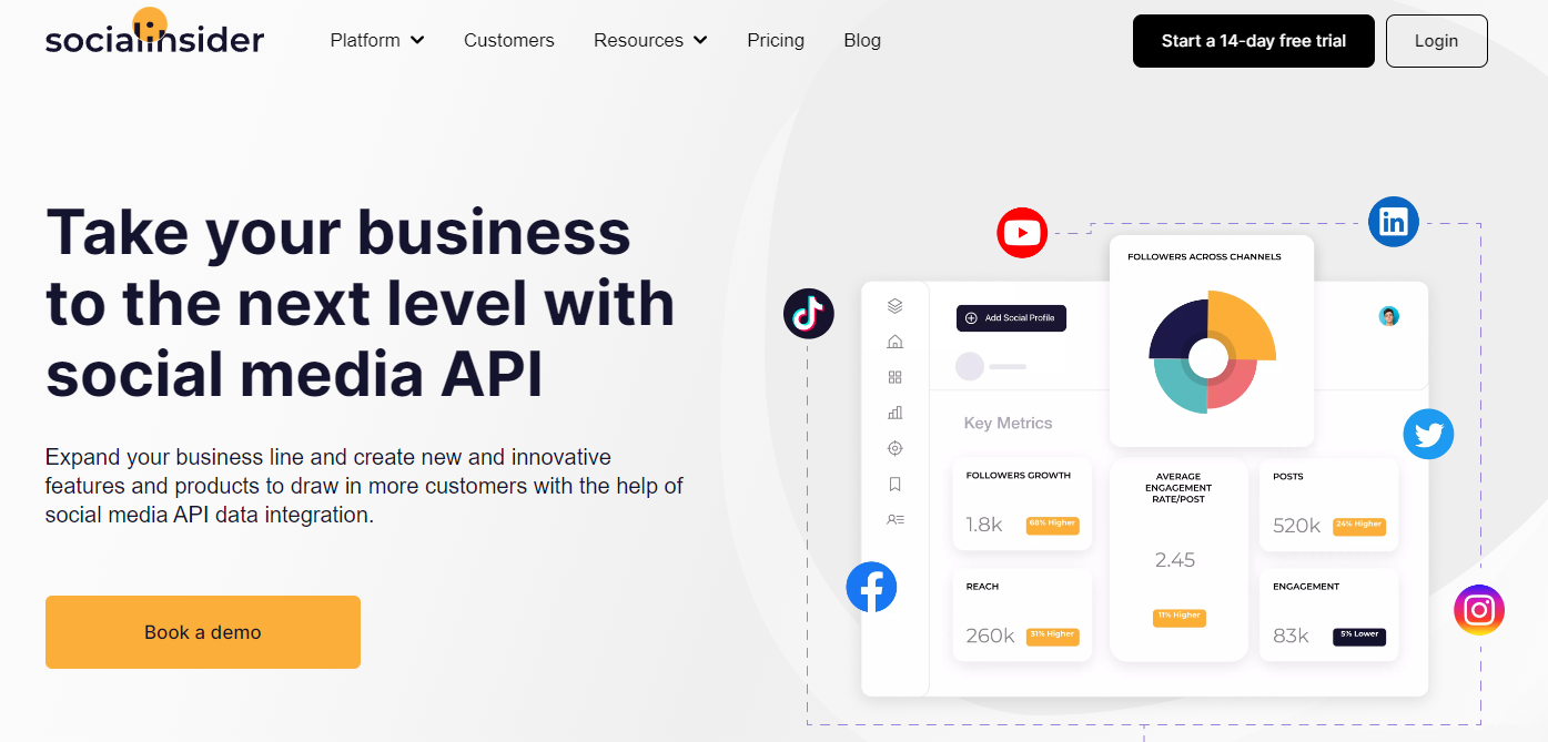 • Social Media Data Integration: Improve your business and create new products that cater to your audience’s needs with Socialinsider’s social media API data.