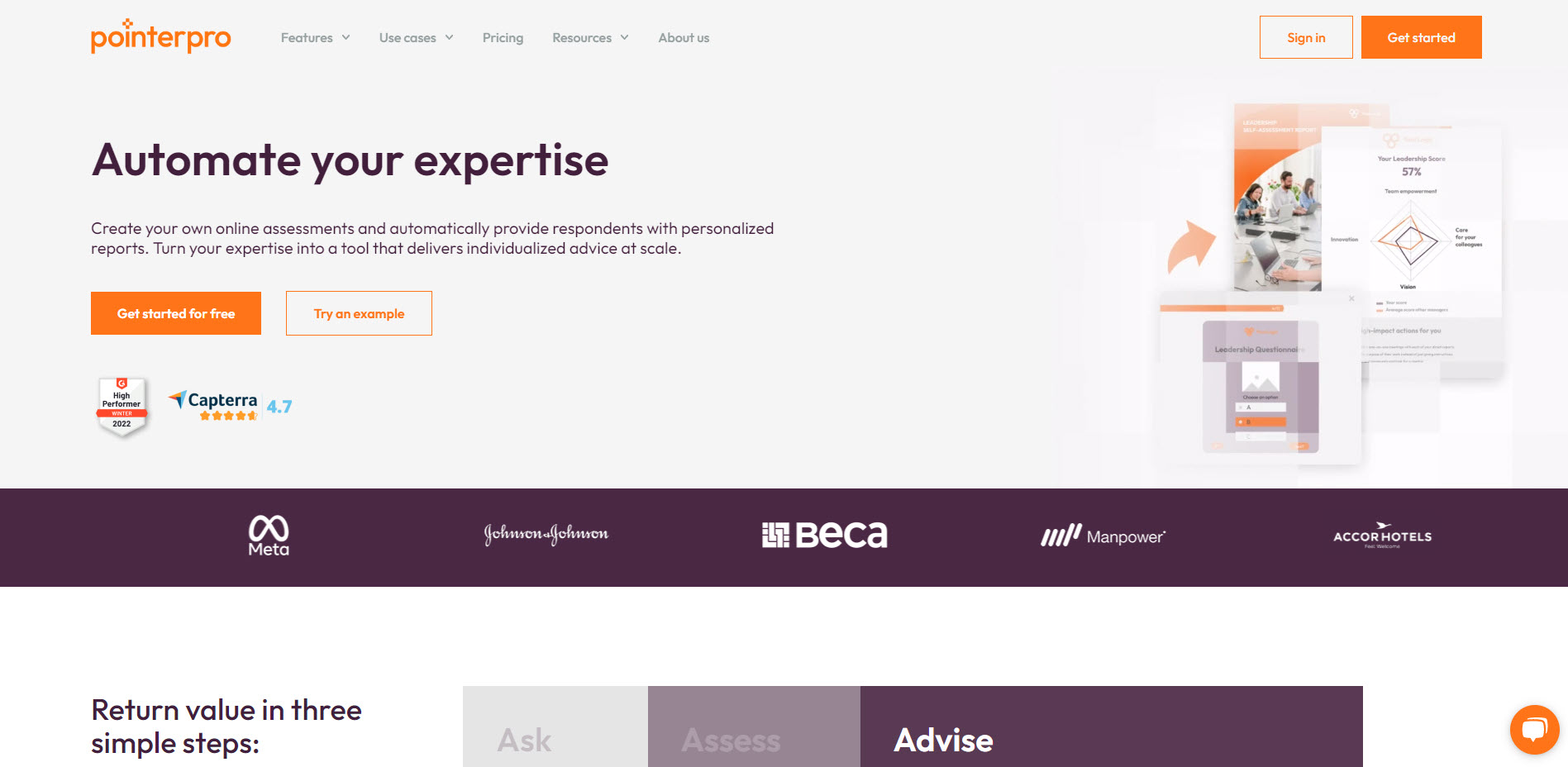 Pointerpro lets you make assessment surveys that automatically generate personalized advice and reports for each respondent. It’s a great way to collect leads and quality data by offering real value and useful insights in return.