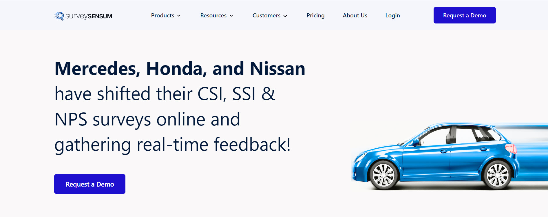 SurveySensum is a platform that helps businesses create market research, customer success, and customer/employee feedback surveys. This survey tool is particularly popular among clients in the automotive, healthcare, and insurance industries.