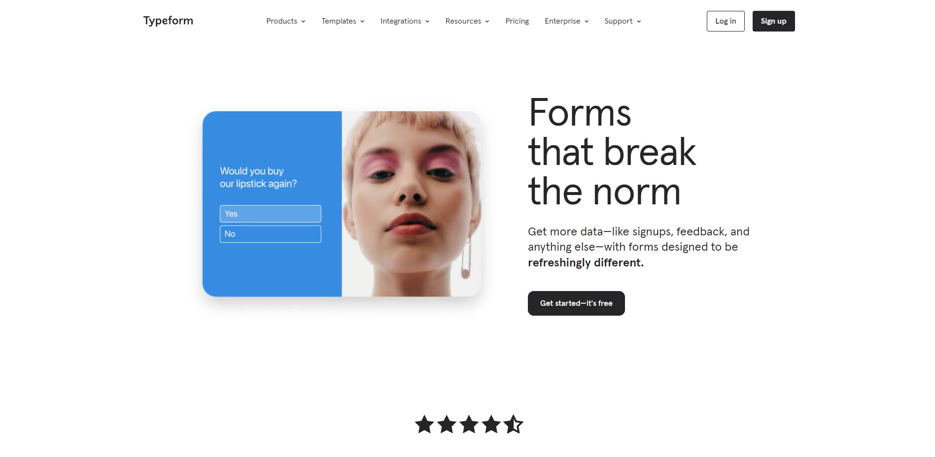 Typeform is known for its conversational survey approach, which results in an engaging experience for respondents. In other words, by making the process fun and interactive, they encourage respondents to complete surveys and provide more valuable feedback.