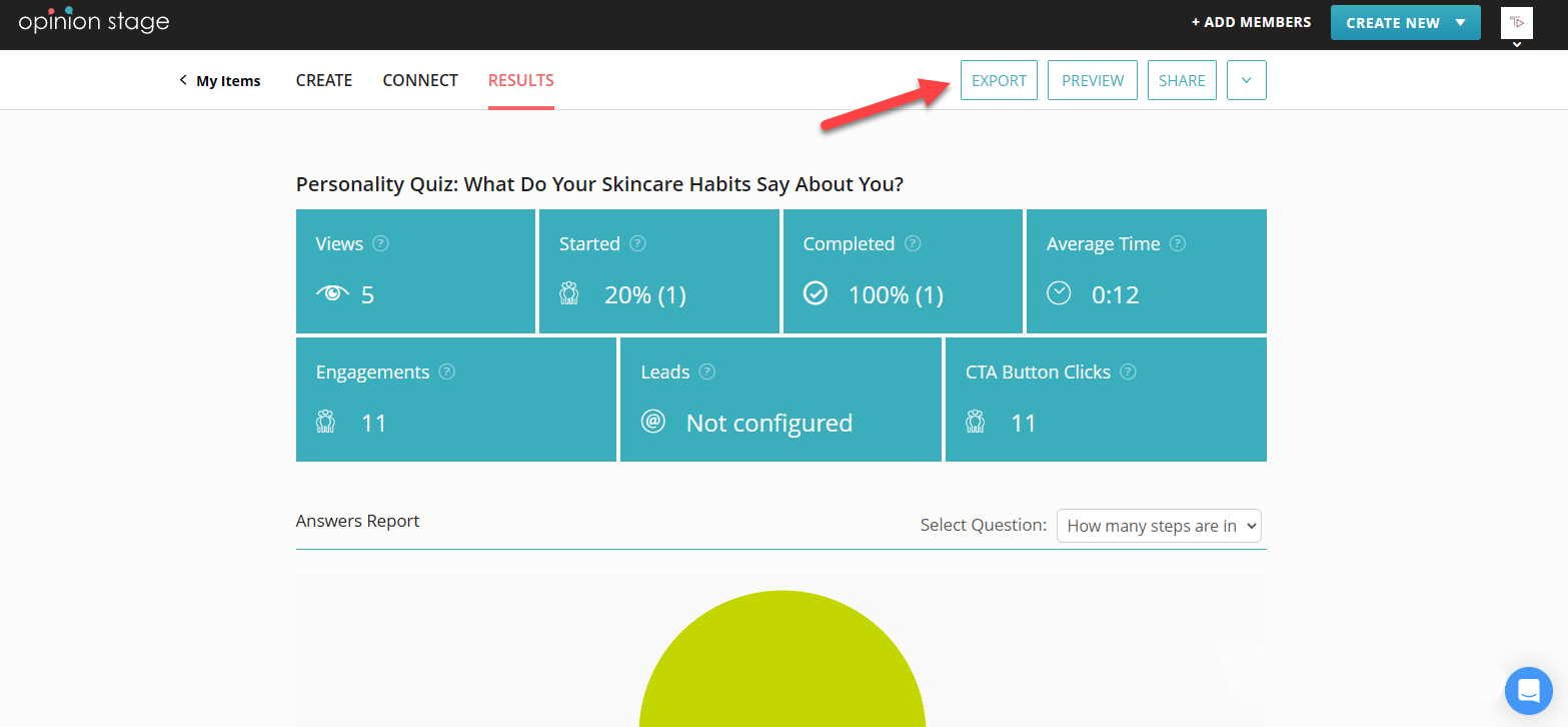Once your quiz is live, you can track its performance in real-time using the analytics dashboard. If your quiz is successful, you’ll see leads coming in. You can export these leads and add them to your email list.