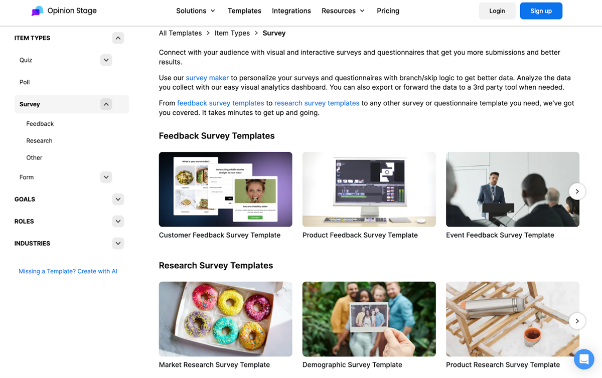 ✅ Wide variety of survey templates, including customer feedback surveys, product research surveys, brand awareness surveys, lead capture surveys, market research surveys, user experience surveys, & more